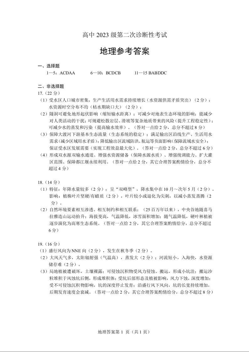 绵阳市高中2023级第二次诊断性考试 地理答案.docx