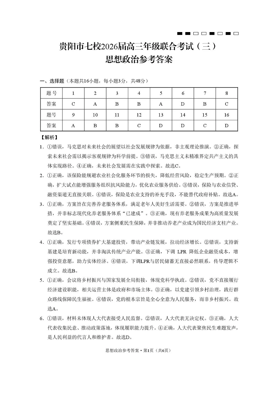贵阳市七校2026届高三年级联合考试(三)政治答案.pdf
