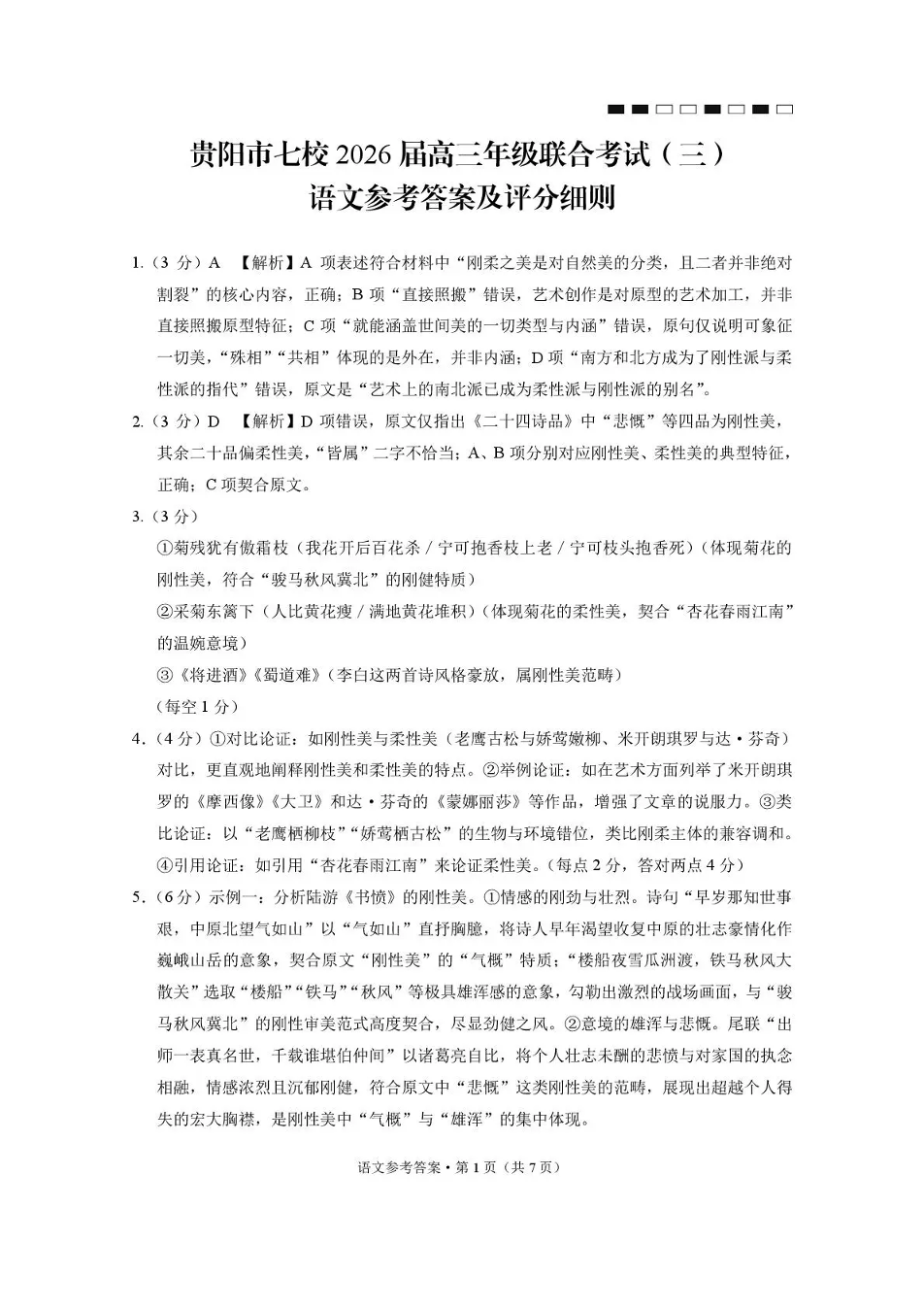 贵阳市七校2026届高三年级联合考试(三)语文答案.pdf