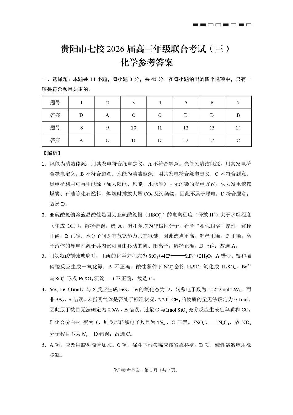 贵阳市七校2026届高三年级联合考试(三)化学答案.pdf