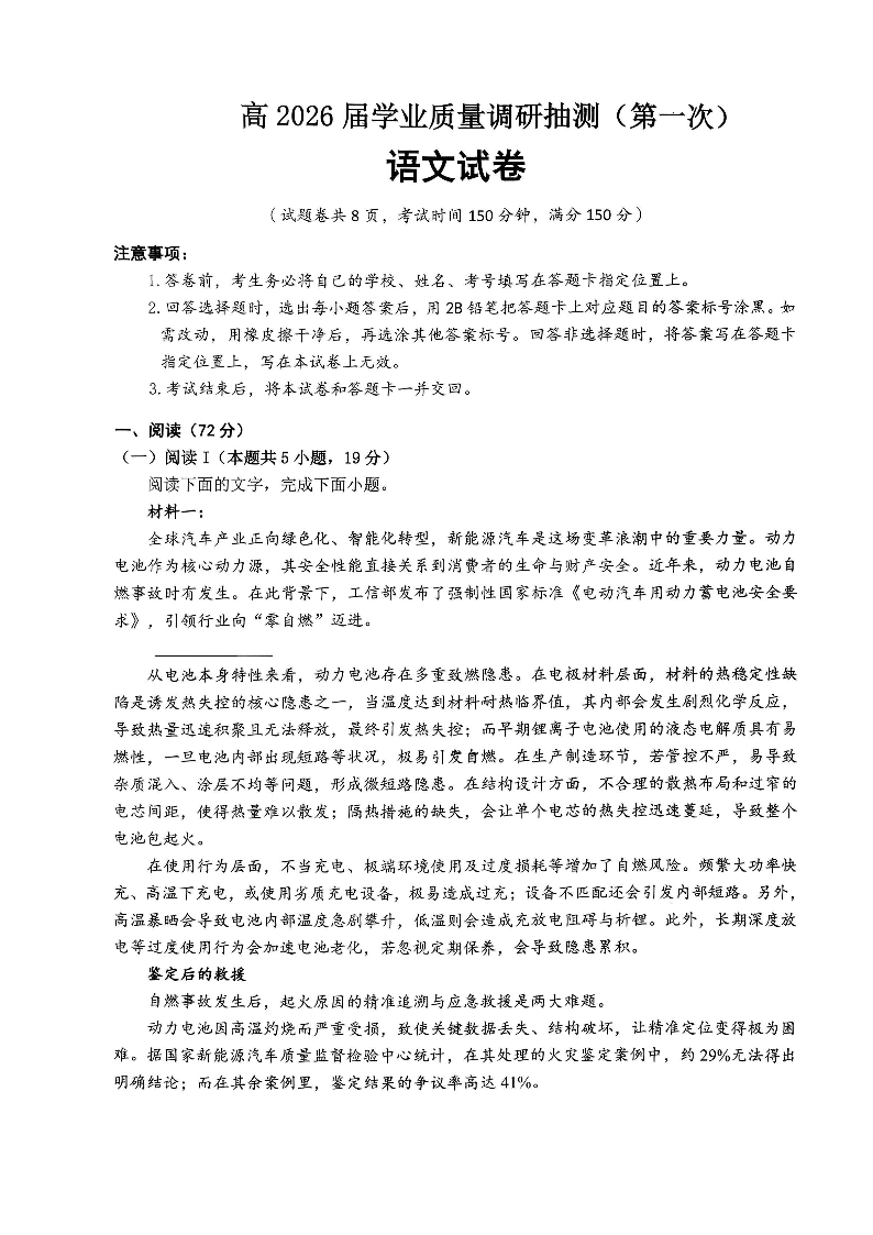九龙坡区高2026届学业质量调研抽测(第一次)语文.pdf