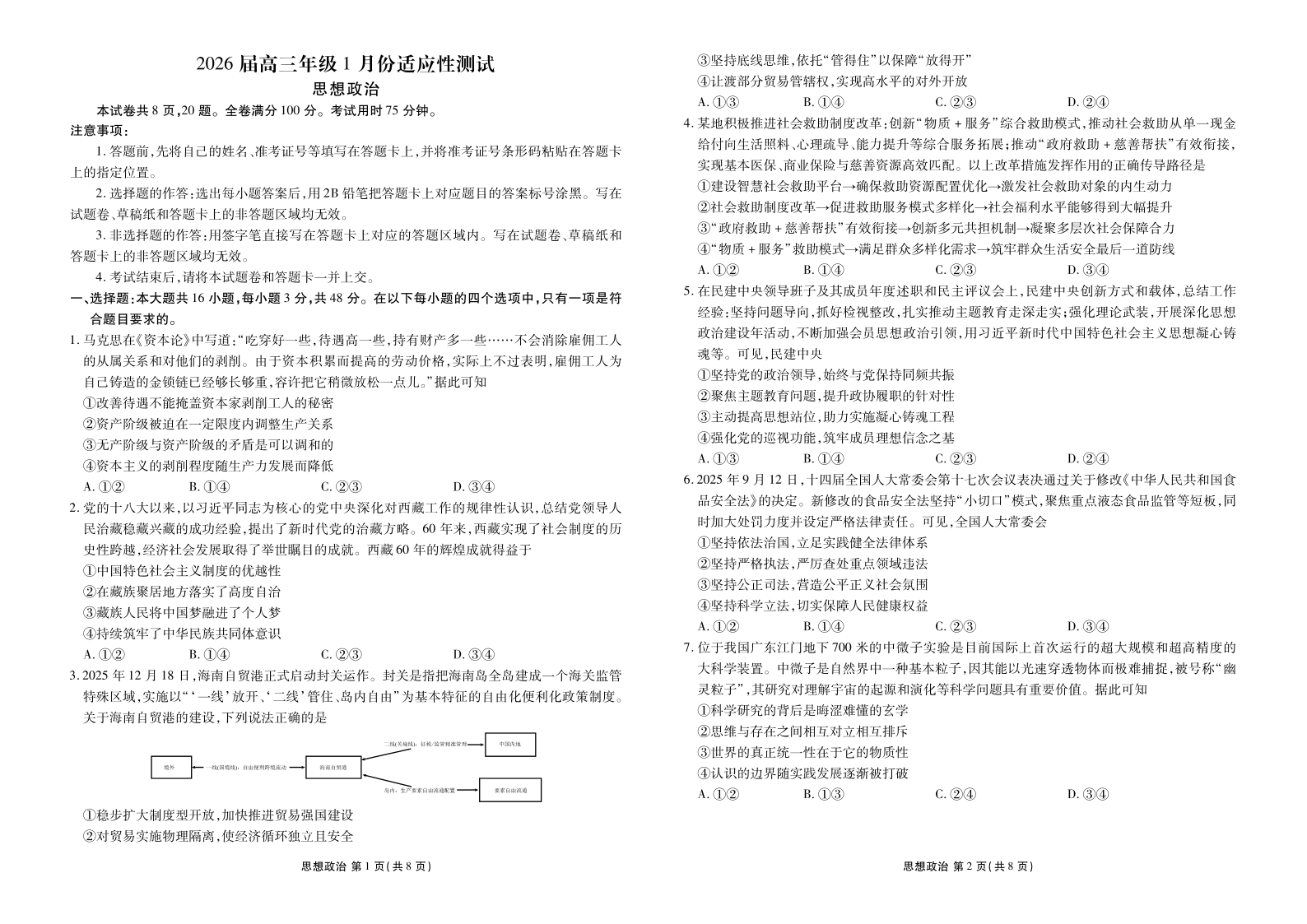 广东省衡水金卷2026届高三年级1月份适应性测试 政治.pdf