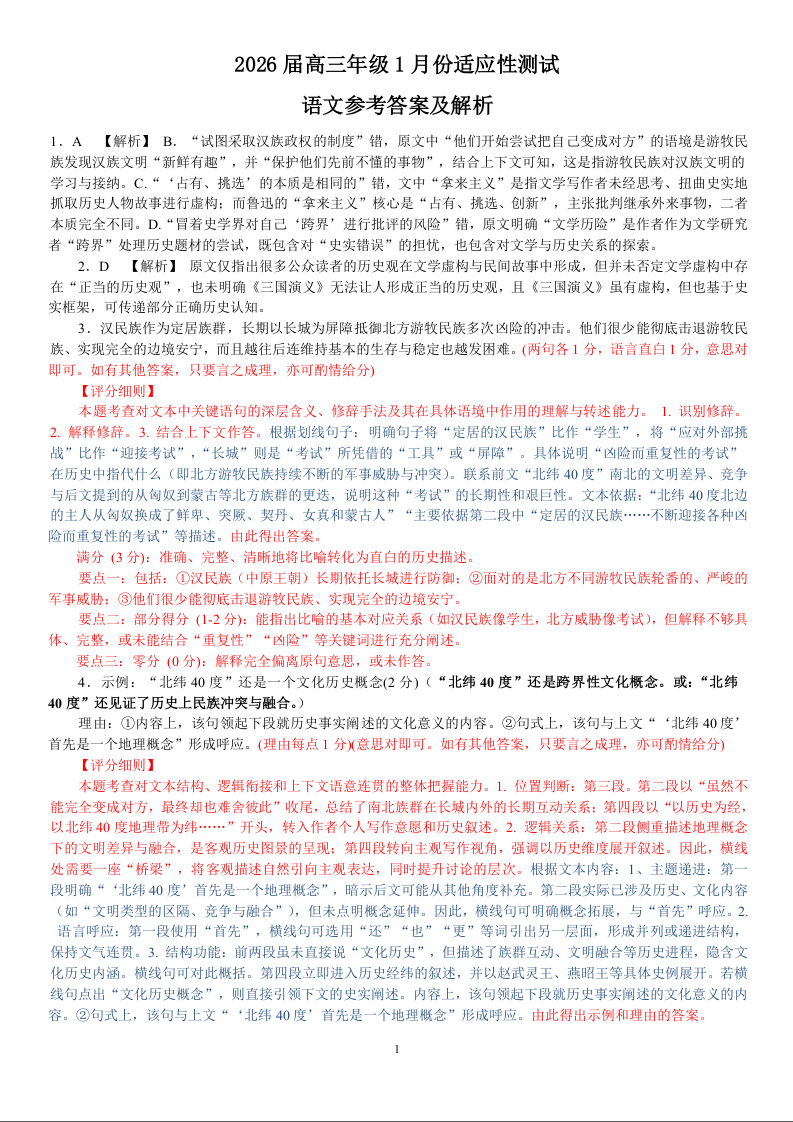 广东省衡水金卷2026届高三年级1月份适应性测试 语文评分细则.doc