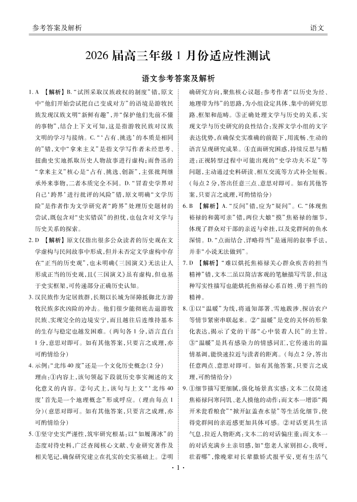 广东省衡水金卷2026届高三年级1月份适应性测试 语文答案.pdf