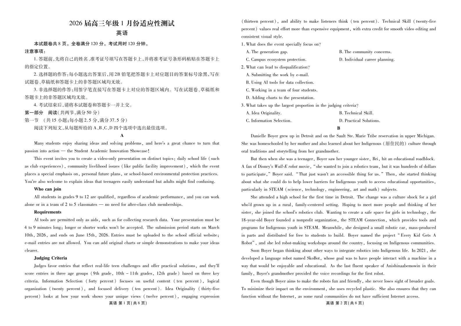 广东省衡水金卷2026届高三年级1月份适应性测试 英语.pdf