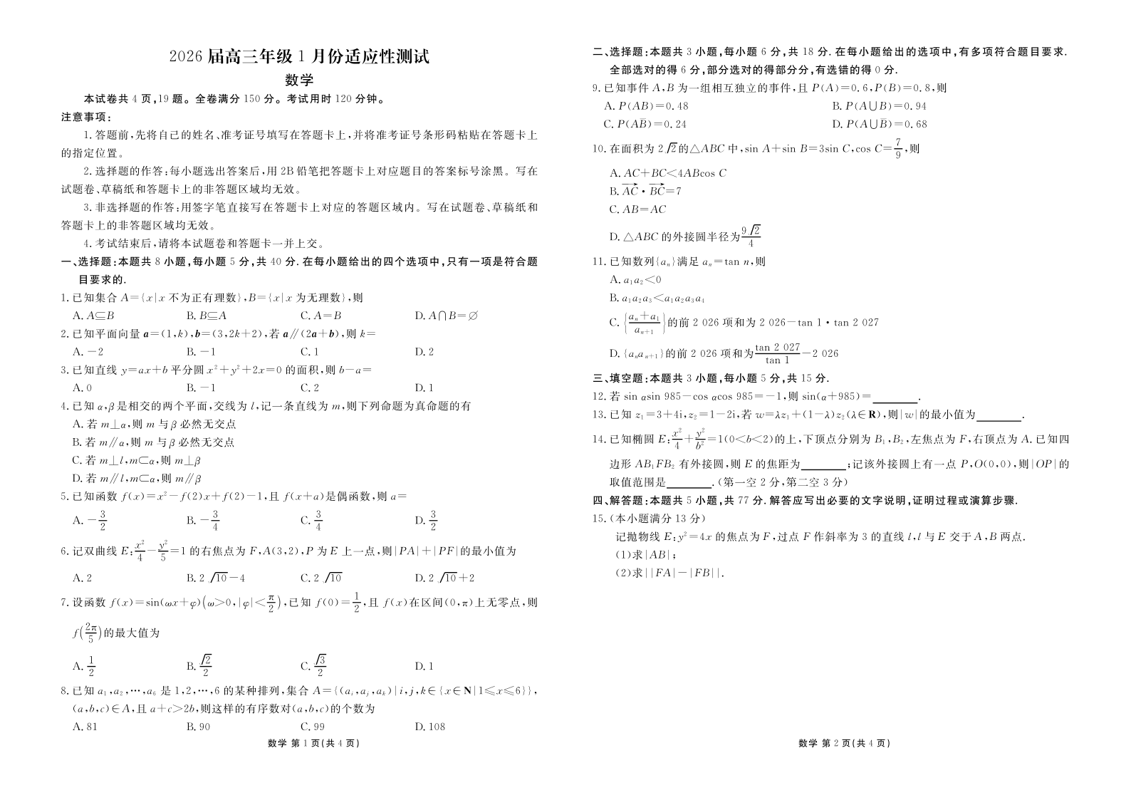 广东省衡水金卷2026届高三年级1月份适应性测试 数学.pdf