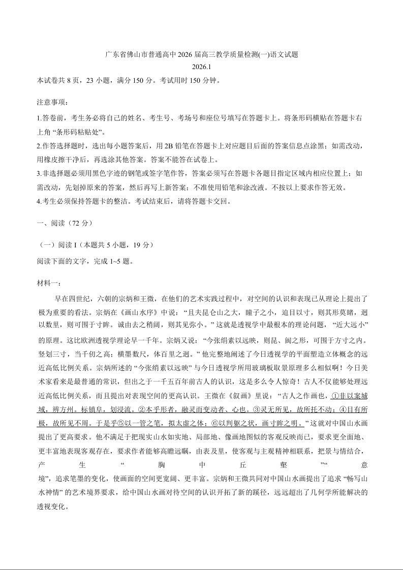 佛山市2025~2026学年佛山市普通高中教学质量检测(一)语文.docx