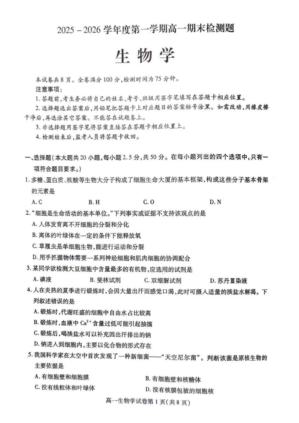内江市2025-2026学年度第一学期高一期末检测题 生物.pdf