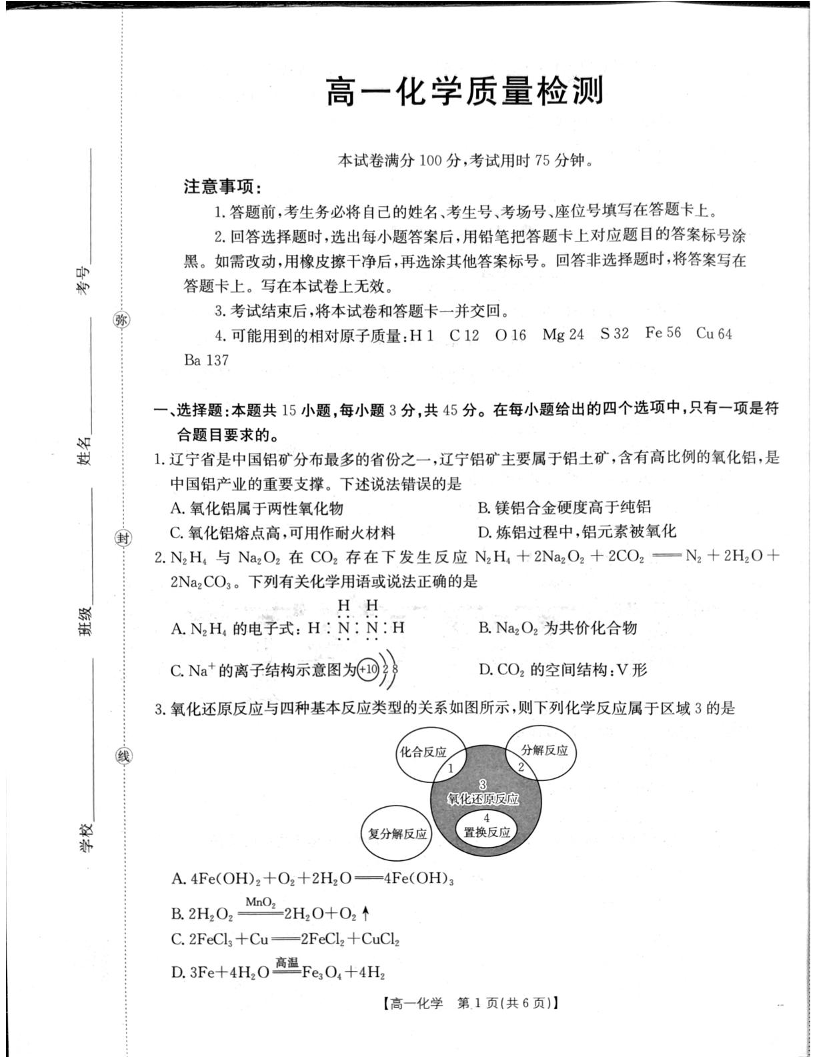 辽宁省辽阳市2025-2026学年高一上学期1月期末考试 化学.pdf