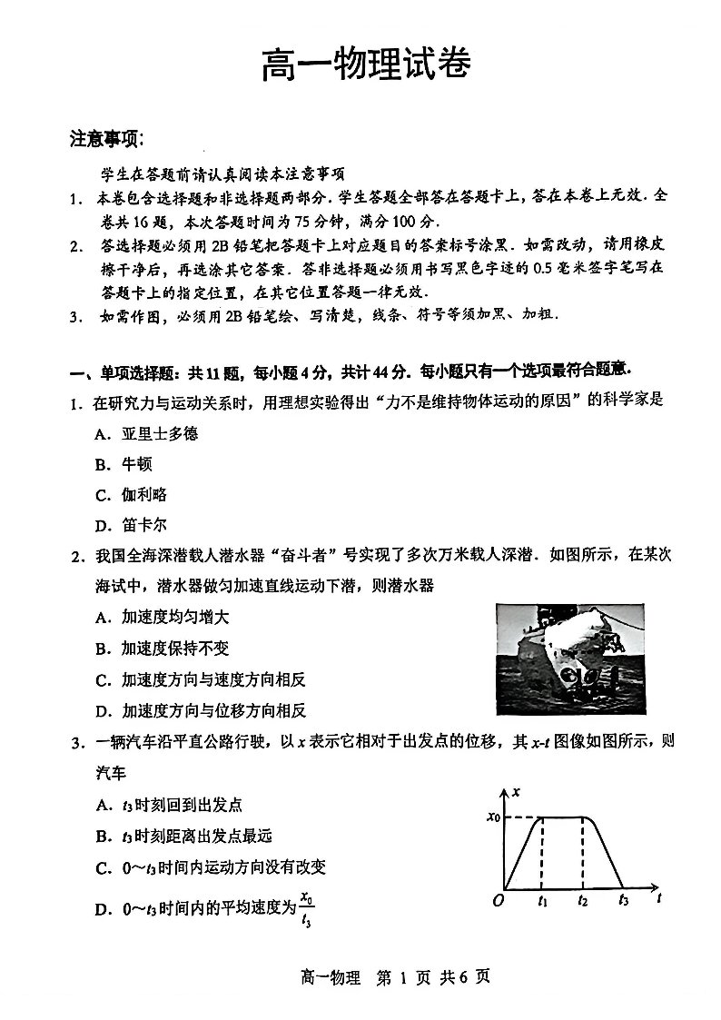江苏省苏州市2025-2026学年度高一上学期期末考试 物理.pdf