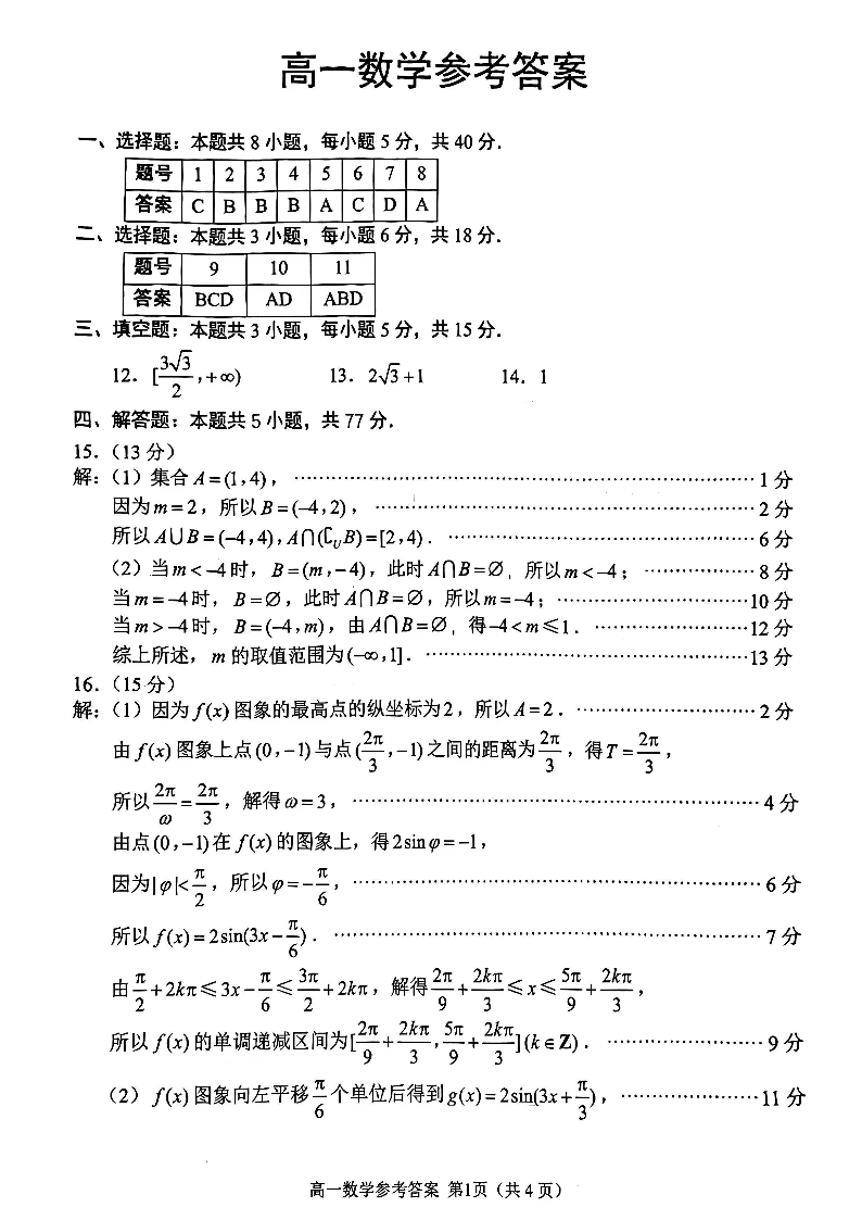 江苏省苏州市2025-2026学年度高一上学期期末考试 数学答案.pdf