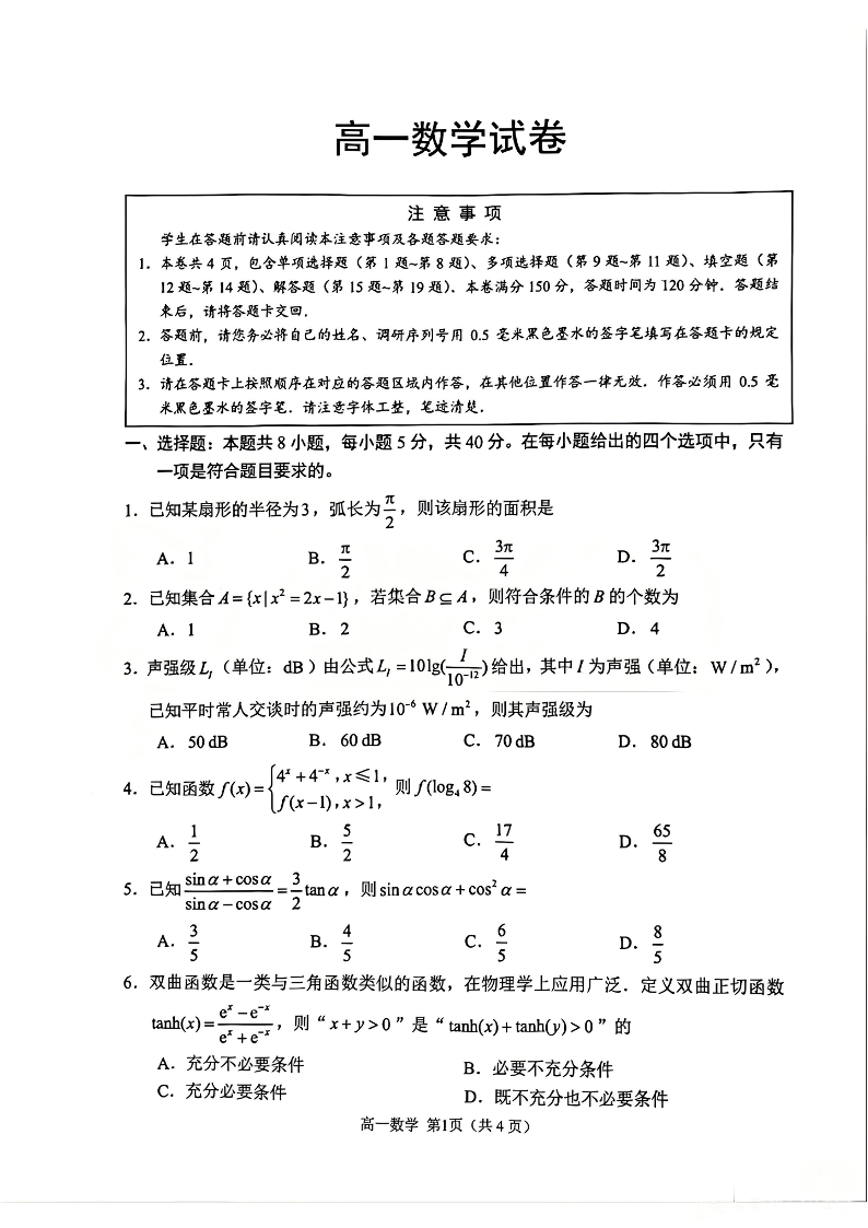 江苏省苏州市2025-2026学年度高一上学期期末考试 数学.pdf