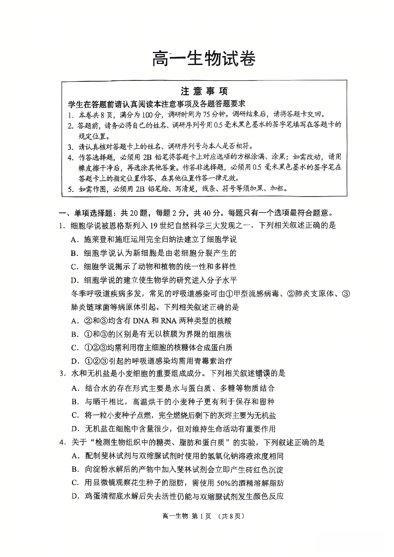 江苏省苏州市2025-2026学年度高一上学期期末考试 生物.pdf