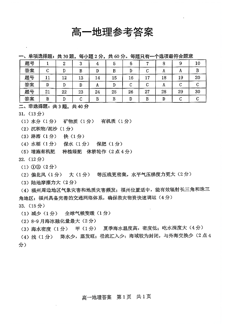江苏省苏州市2025-2026学年度高一上学期期末考试 地理答案.pdf