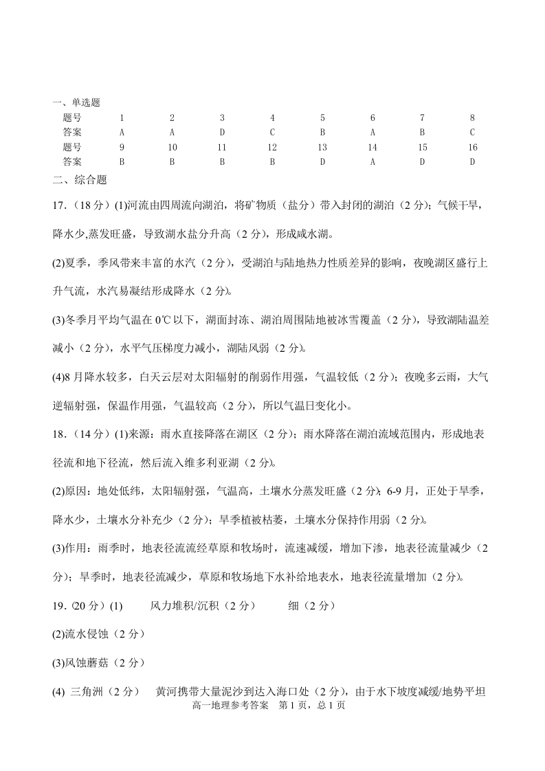 吉林省友好学校第八十届2025-2026学年高一上学期1月期末联考 地理答案.docx