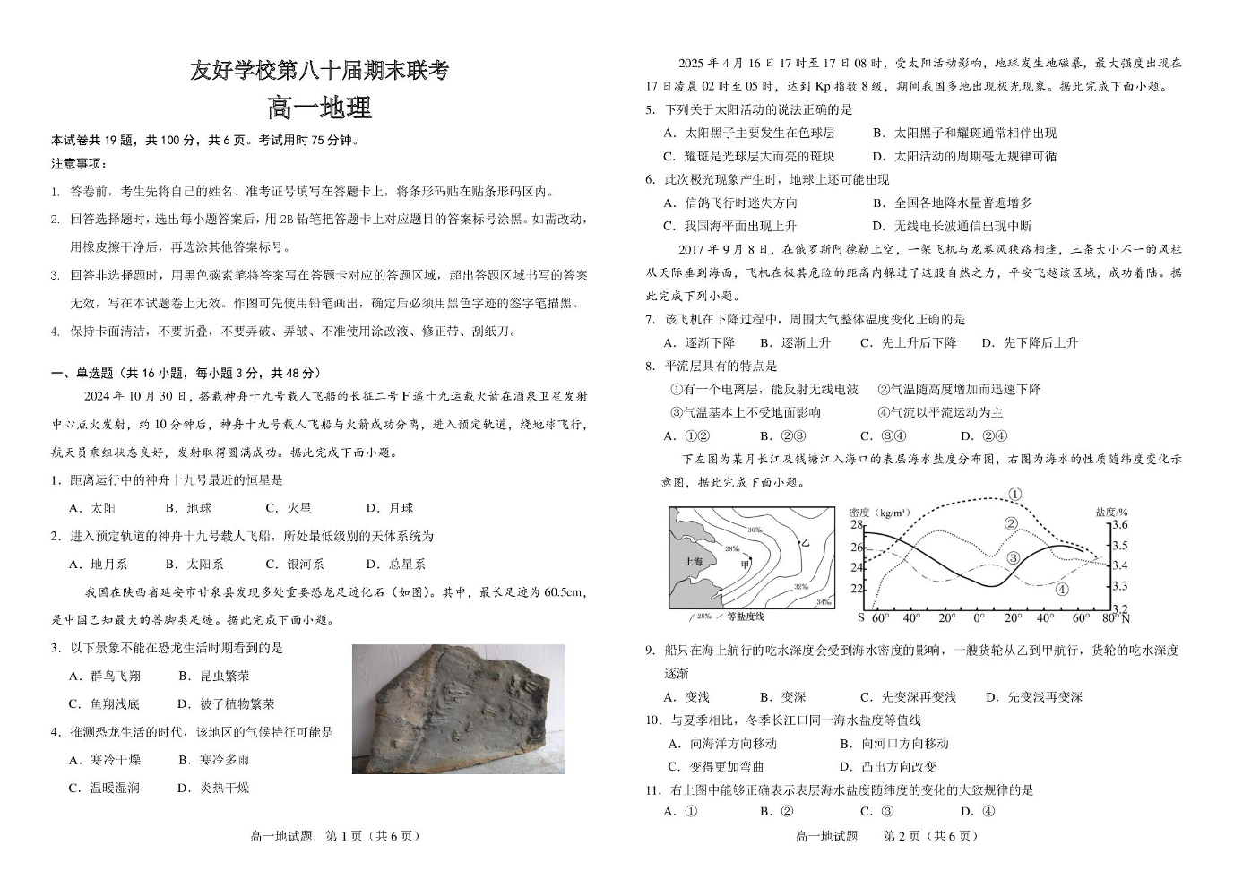 吉林省友好学校第八十届2025-2026学年高一上学期1月期末联考 地理.pdf
