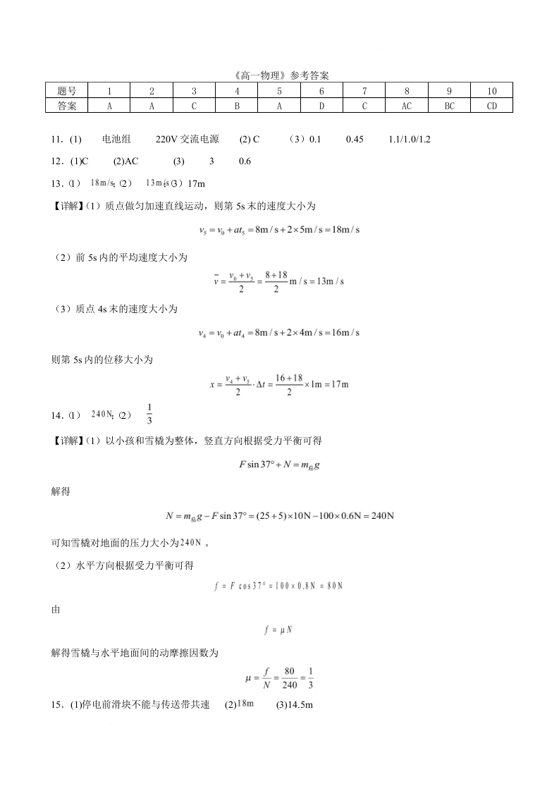 牡丹江市第二高级中学2025-2026学年高一上学期期末考试 物理答案.docx