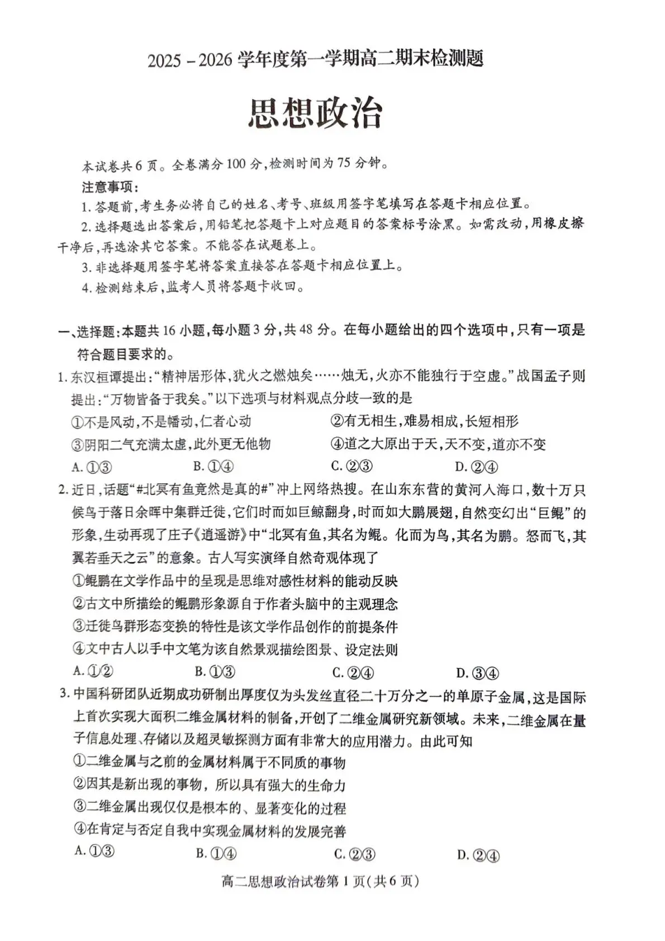 内江市2025-2026学年度第一学期高二期末检测题 政治.pdf