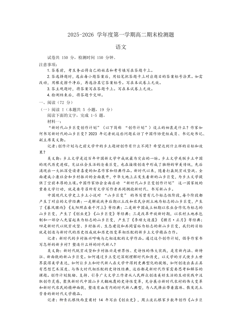 内江市2025-2026学年度第一学期高二期末检测题 语文答案.pdf