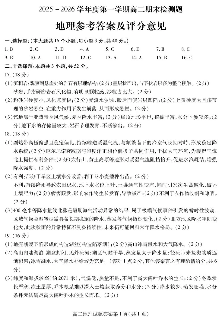 内江市2025-2026学年度第一学期高二期末检测题 地理答案.pdf