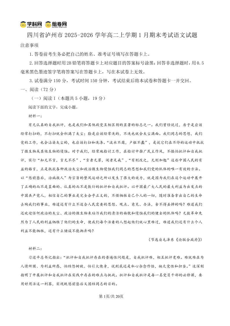 泸州市高2024级高二年级上学期质量监测试题 语文答案.pdf