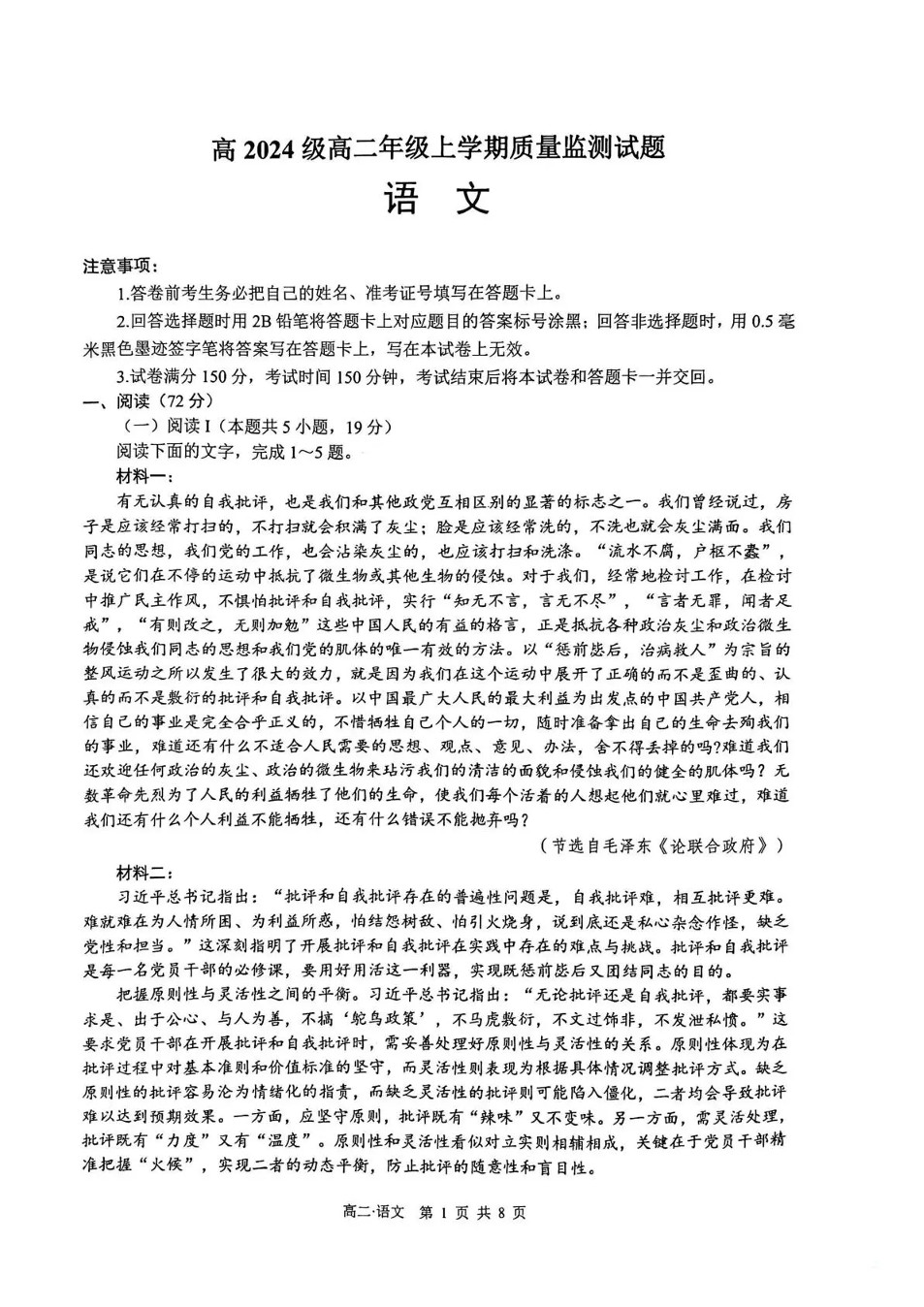 泸州市高2024级高二年级上学期质量监测试题 语文.pdf