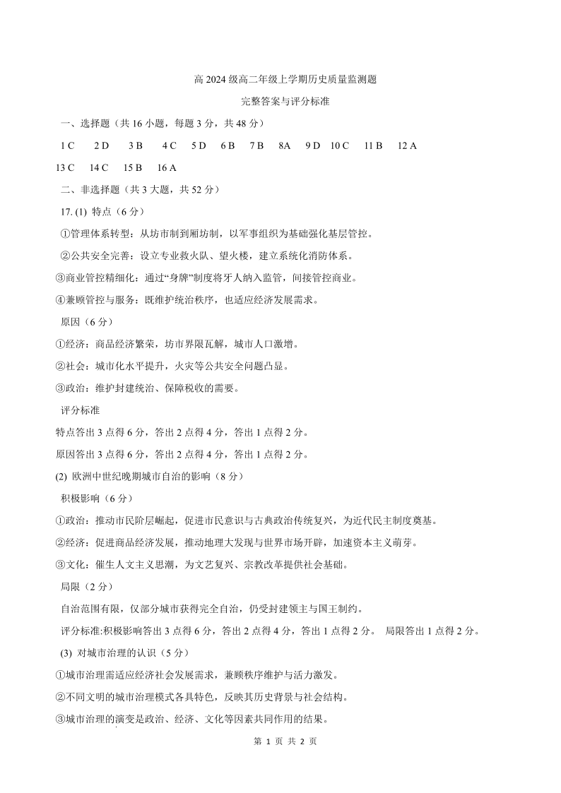 泸州市高2024级高二年级上学期质量监测试题 历史答案.pdf