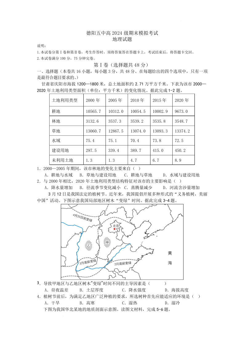 四川省德阳市第五中学2025-2026学年高二上学期1月月考 地理试题(含答案).docx