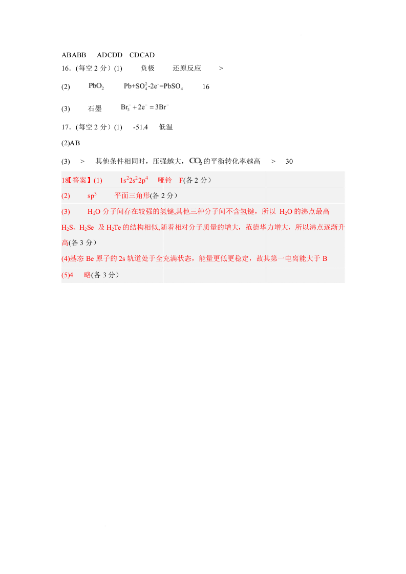 牡丹江市第二高级中学2025-2026学年高二上学期期末考试 化学答案.docx