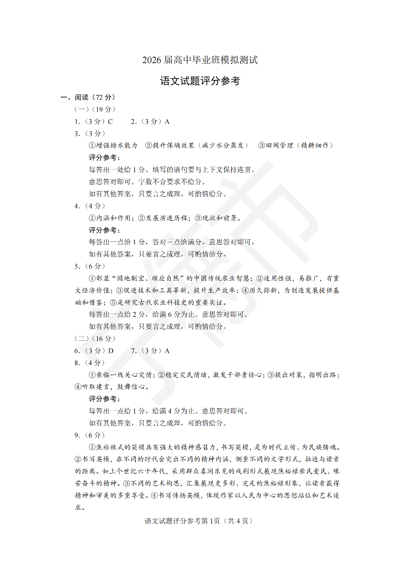 福建省七市2026届高中毕业班模拟测试 语文答案.pdf