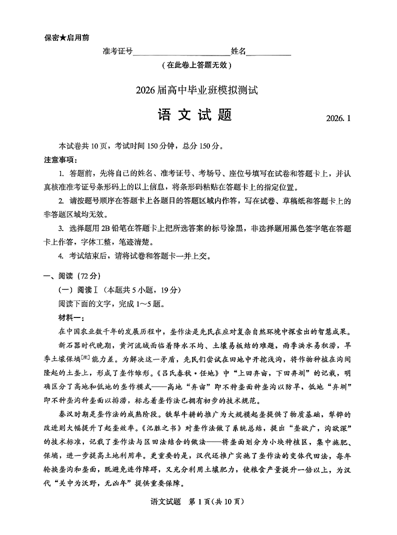 福建省七市2026届高中毕业班模拟测试 语文.pdf