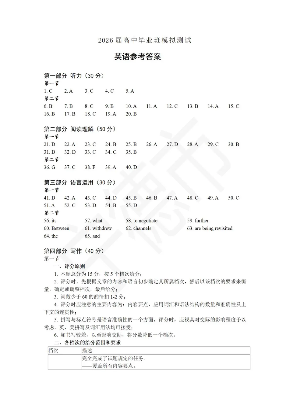 福建省七市2026届高中毕业班模拟测试 英语答案.pdf