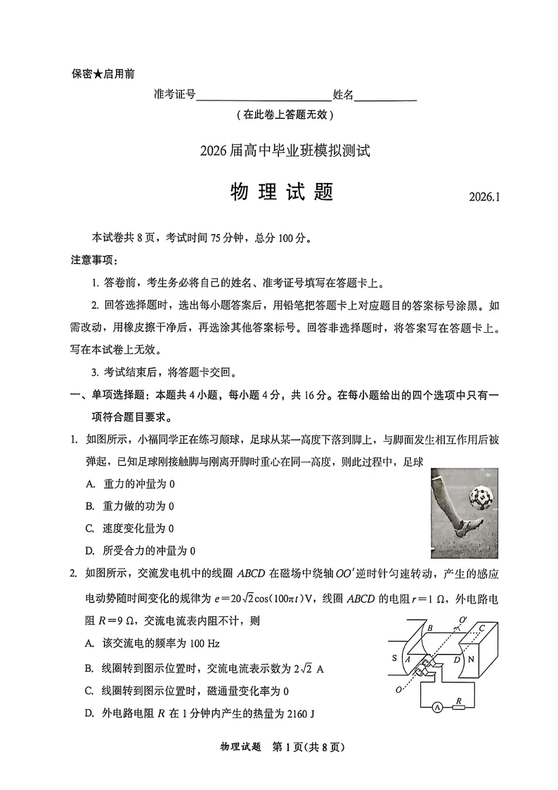 福建省七市2026届高中毕业班模拟测试 物理.pdf