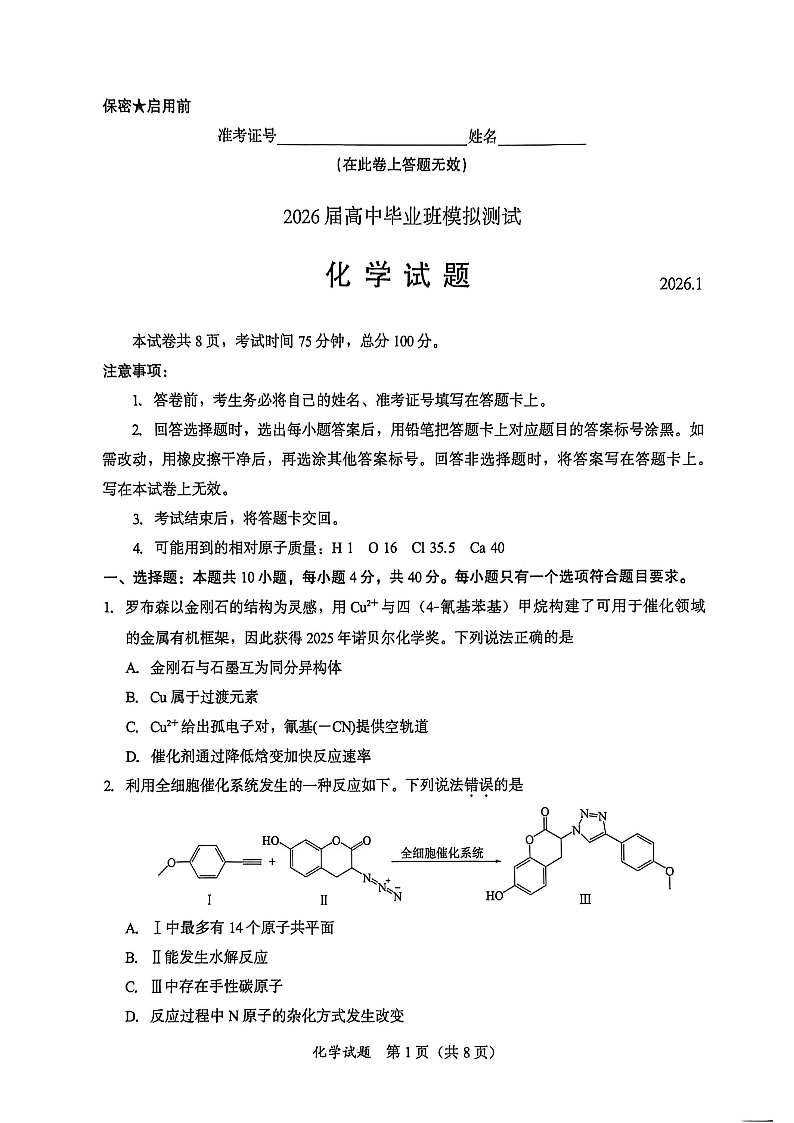 福建省七市2026届高中毕业班模拟测试 化学.pdf
