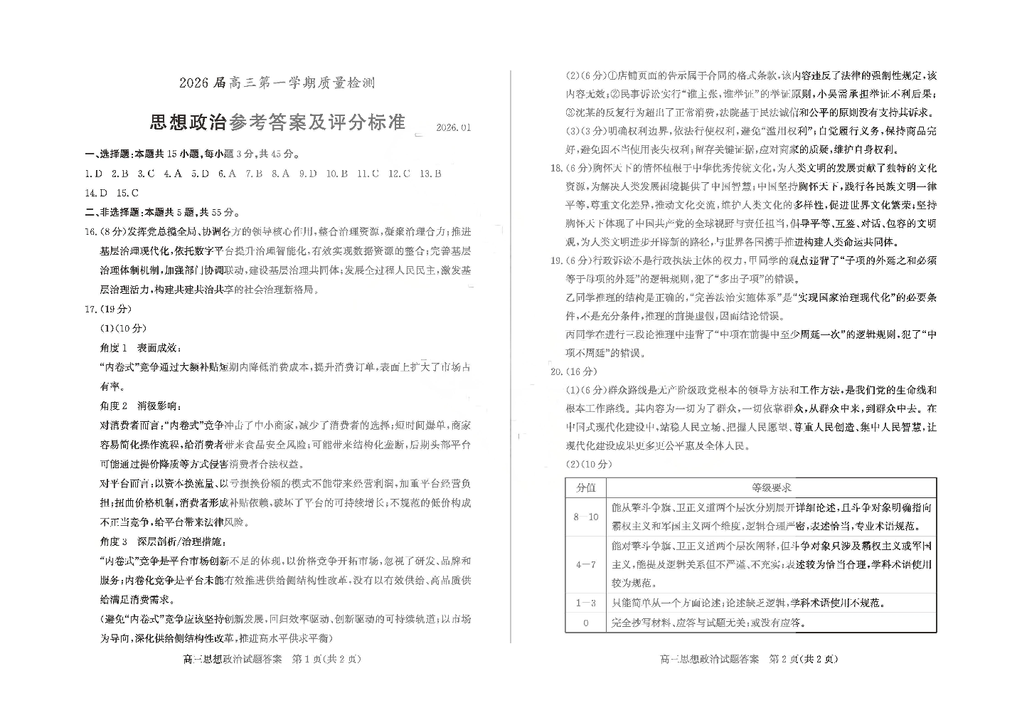 山东省枣庄市2026届高三第一学期质量检测 政治答案.pdf
