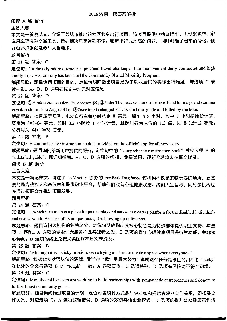 山东省济南市2026届高三第一次模拟考试暨上学期期末考 英语答案.pdf