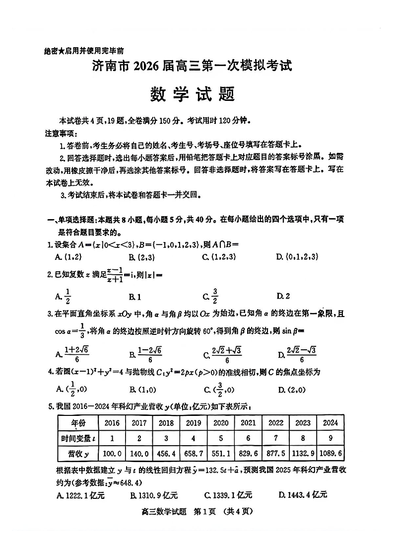 山东省济南市2026届高三第一次模拟考试暨上学期期末考 数学.pdf