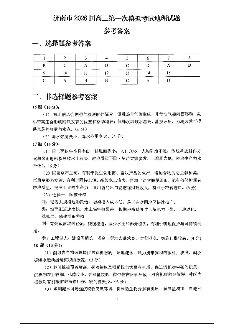 山东省济南市2026届高三第一次模拟考试暨上学期期末考 地理答案.pdf