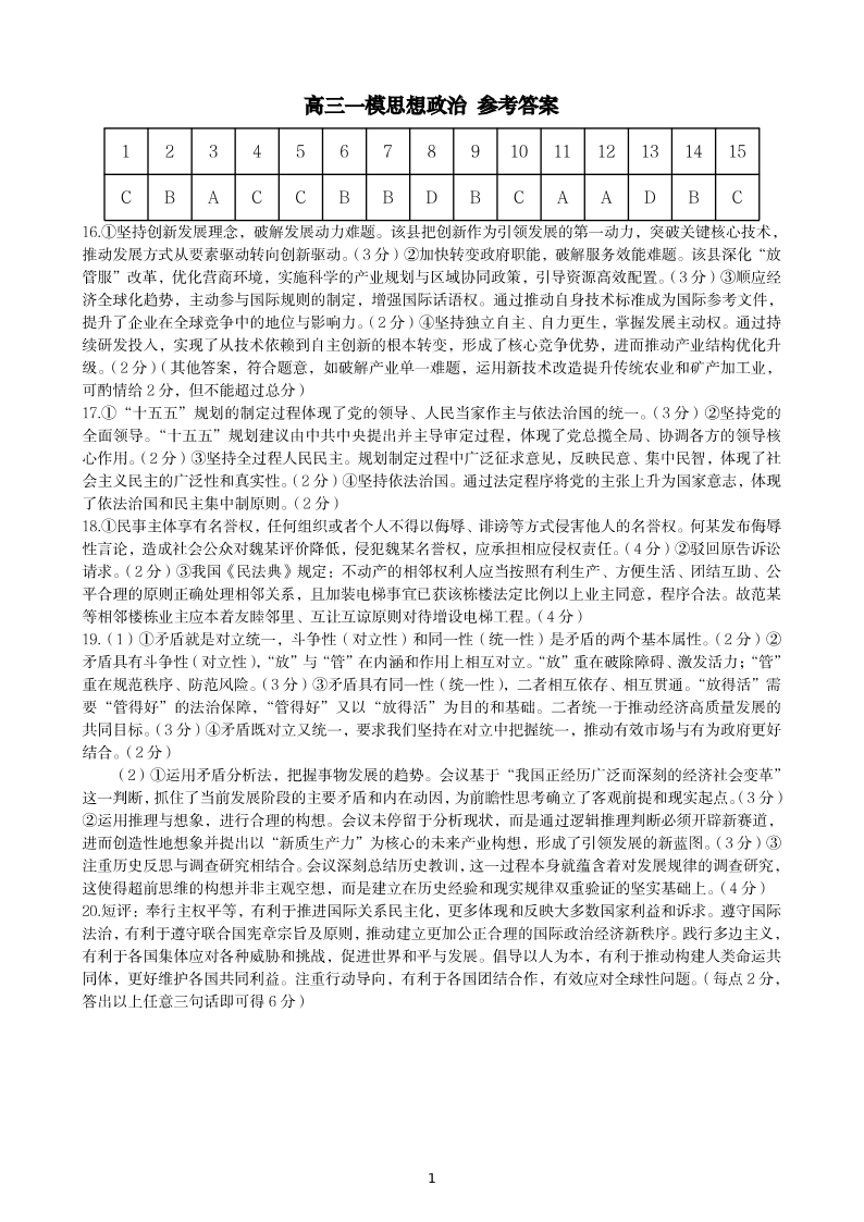 上饶市2026届高三年级第一次高考模拟考试 政治答案.pdf