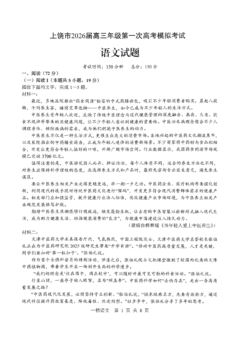 上饶市2026届高三年级第一次高考模拟考试 语文.pdf