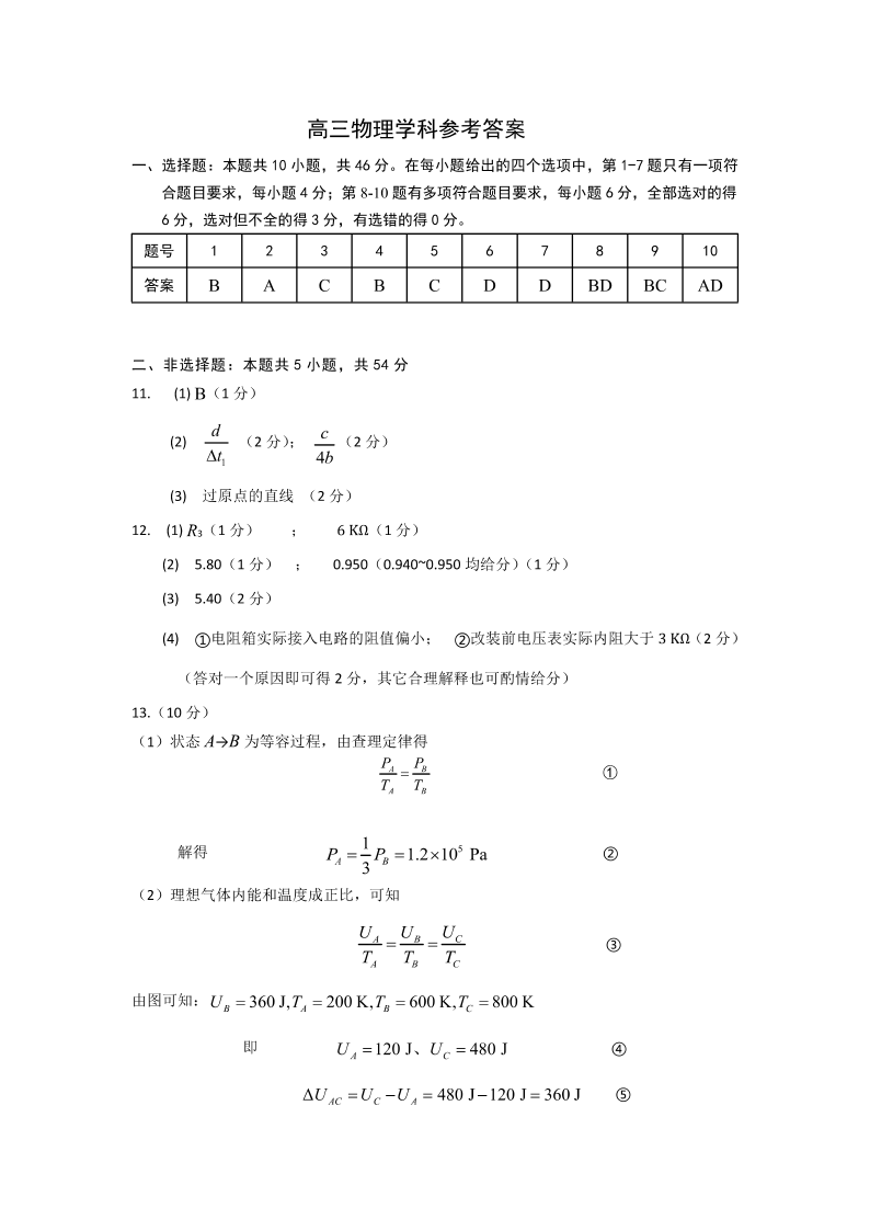 上饶市2026届高三年级第一次高考模拟考试 物理答案.pdf