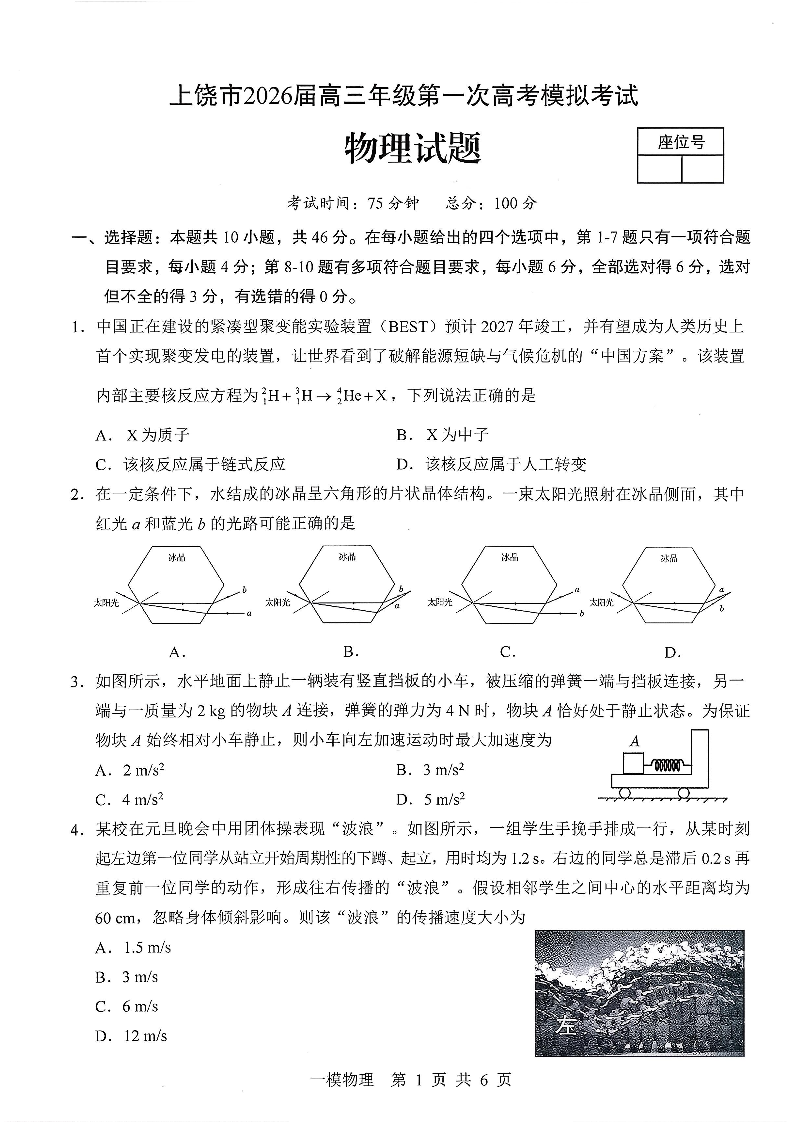 上饶市2026届高三年级第一次高考模拟考试 物理.pdf