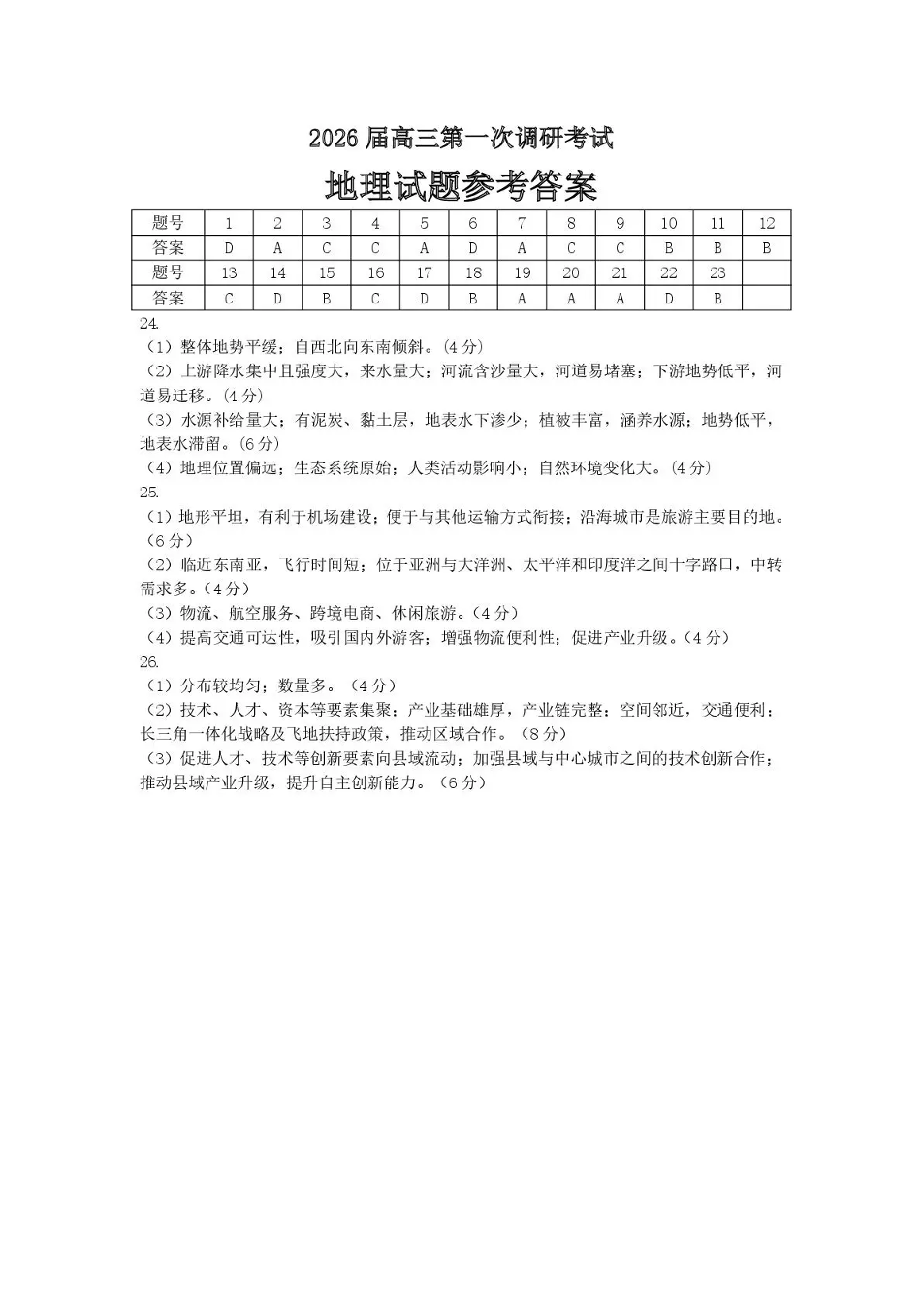 2026届高三年级第一次调研测试 地理答案.pdf