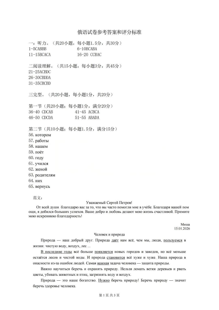 湖北省新八校高三元月调考第二次联考 俄语答案.pdf