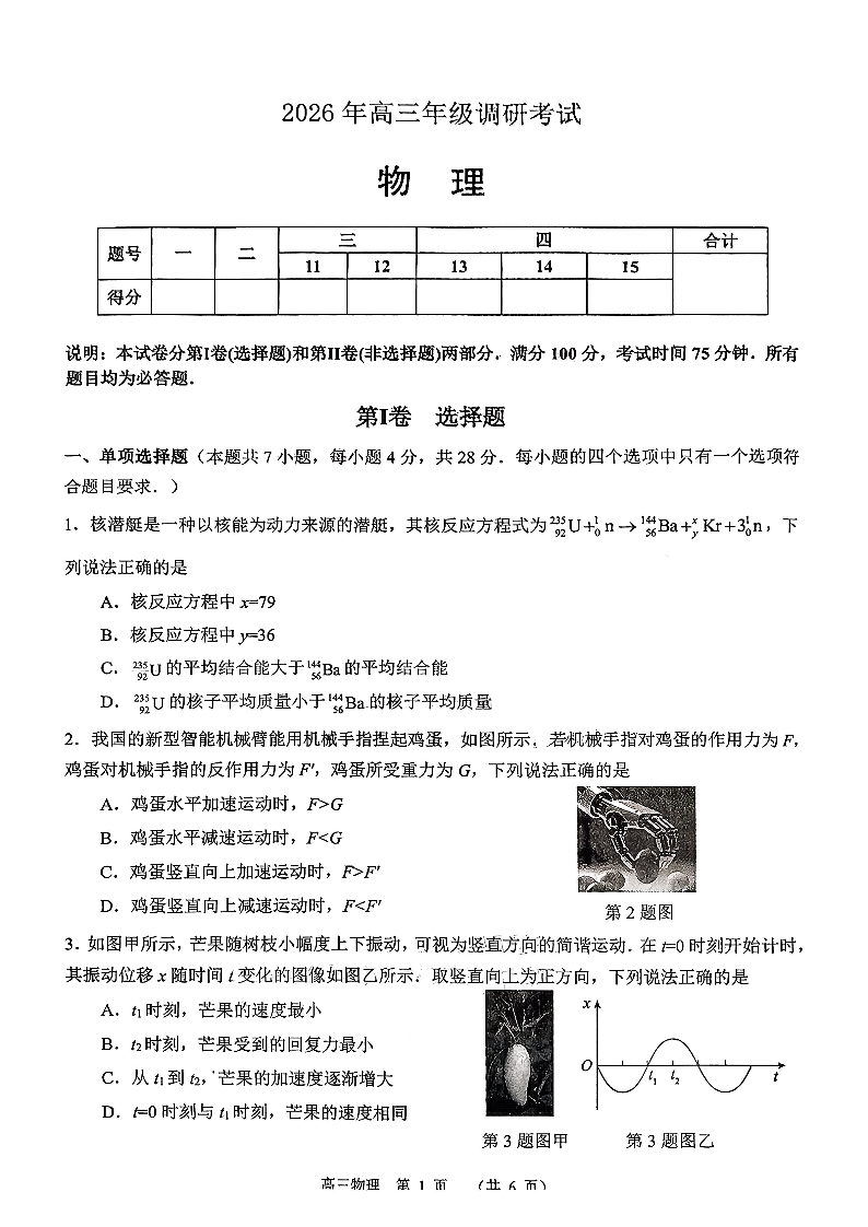 广东省揭阳市、东莞市2026年高三年级上学期期末调研考试 物理.pdf