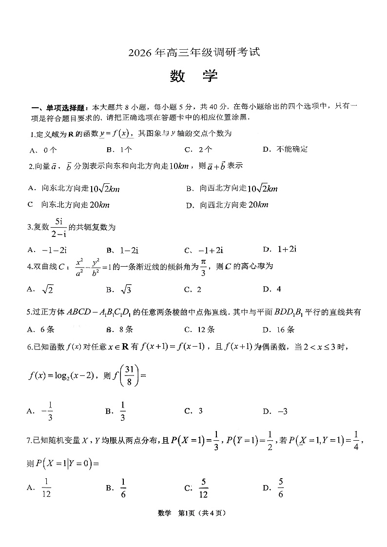 广东省揭阳市、东莞市2026年高三年级上学期期末调研考试 数学.pdf