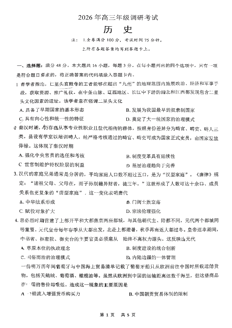 广东省揭阳市、东莞市2026年高三年级上学期期末调研考试 历史.pdf