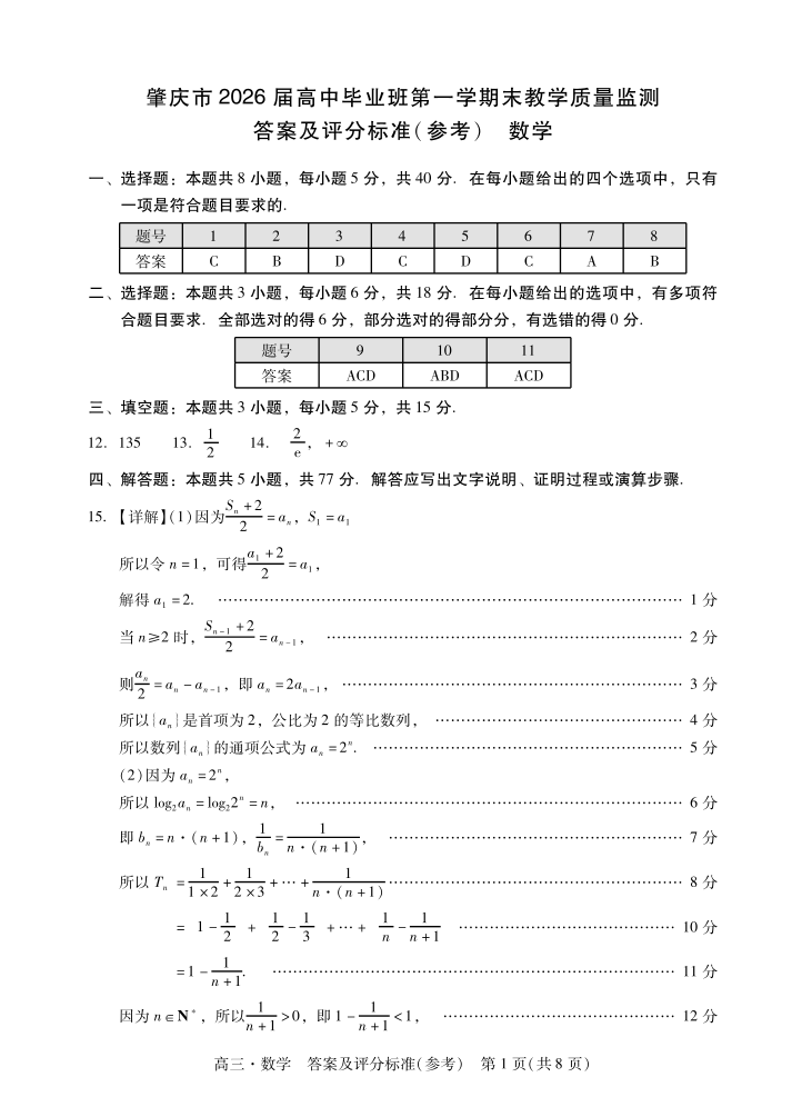 肇庆市2026届高中毕业班高三年级第一学期末教学质量监测 数学答案.pdf