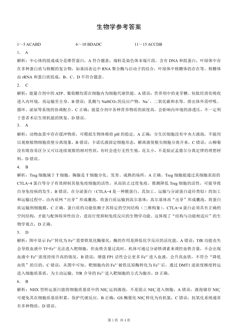 重庆市2026年普通高等学校招生全国统一考试 生物答案.pdf