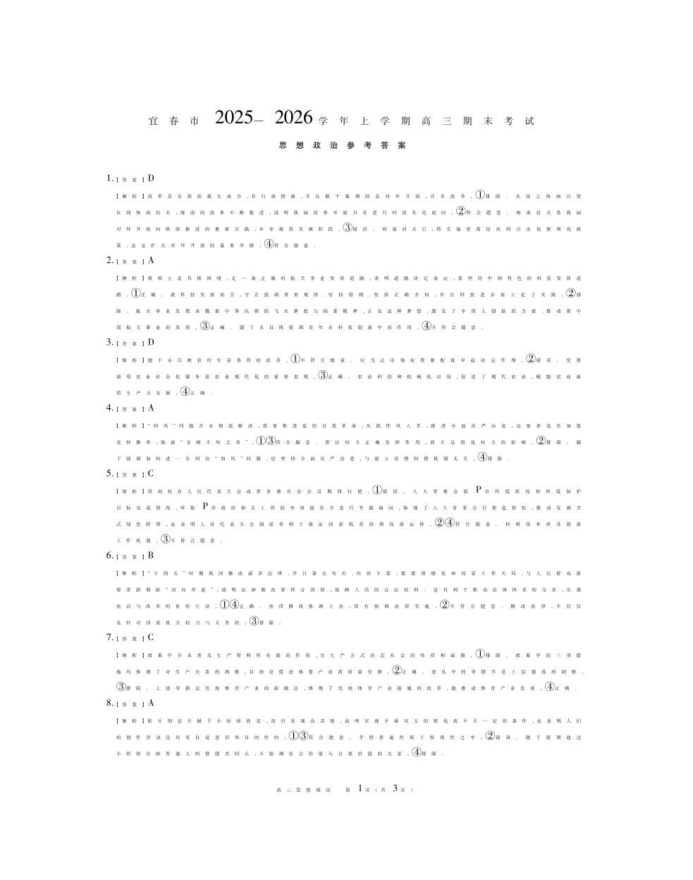 26届1月宜春高三·政治答案.pdf